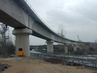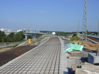 nadvo`njaci, rampa i most kod biv{e rafinerije Caltex (slika gore lijevo), most Ticona (slika gore desno) i na kraju tzv. FESTE FAHRBAHN (slika gore u sredini: donji stroj izveden i pragovi zaliveni u betonu). |